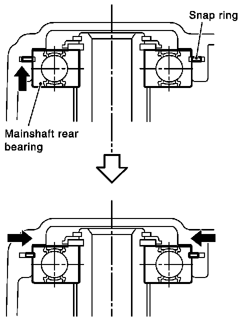h. Securely install snap ring onto mainshaft rear bearing.