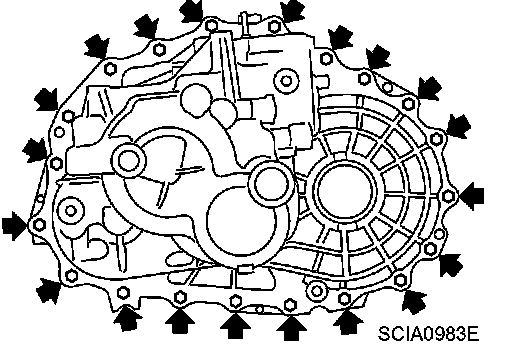 c. Apply sealant to mating surfaces of transaxle case and clutch housing. Use Genuine Anaerobic Liquid Gasket or equivalent.