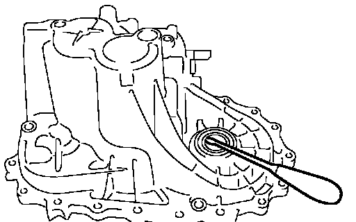 7. While spreading the snap ring of mainshaft rear bearing located at bore plug hole, remove transaxle case.