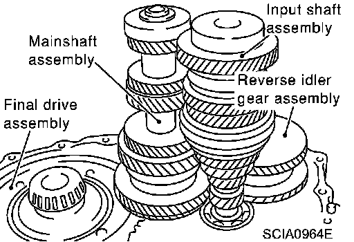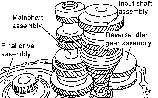8. Install input shaft assembly, mainshaft assembly, and reverse idler gear assembly into clutch housing.