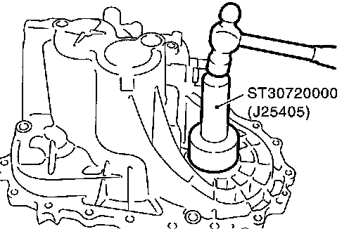 10. Remove differential side bearing outer race (transaxle case side) and then adjusting shim.
