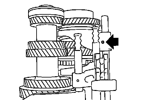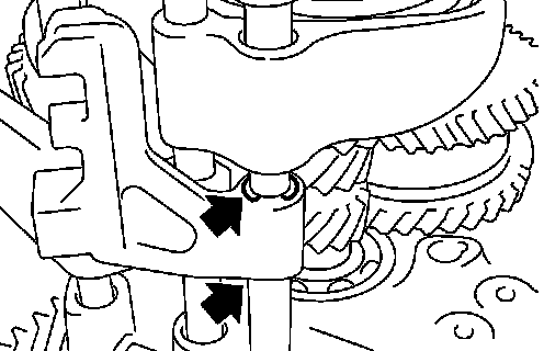 b. While lifting reverse shift fork, align cam with reverse bracket.