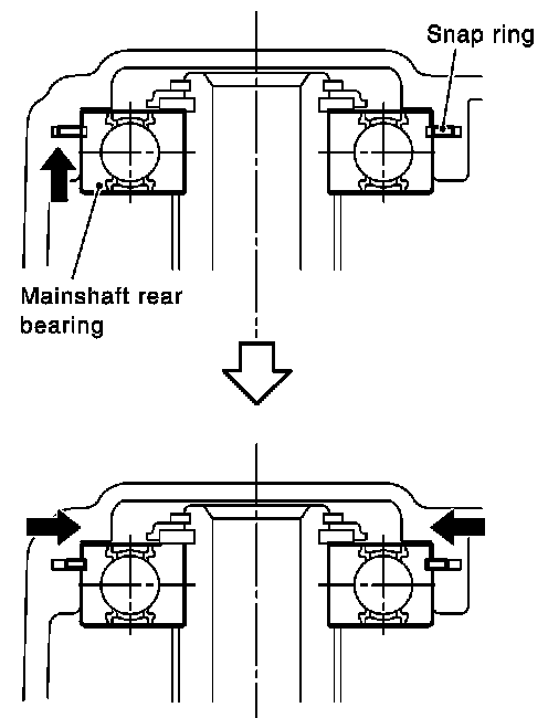 b. Temporarily install snap ring of mainshaft rear bearing into transaxle case.