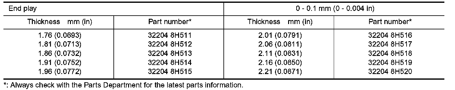 INPUT SHAFT REAR BEARING ADJUSTING SHIM