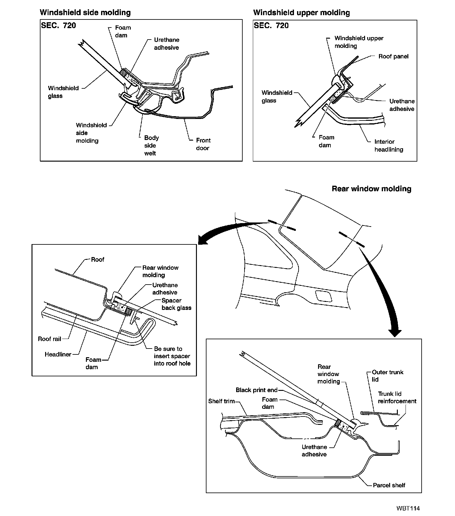 Use genuine Nissan Urethane Adhesive Kit or equivalent and follow the instructions furnished with it.