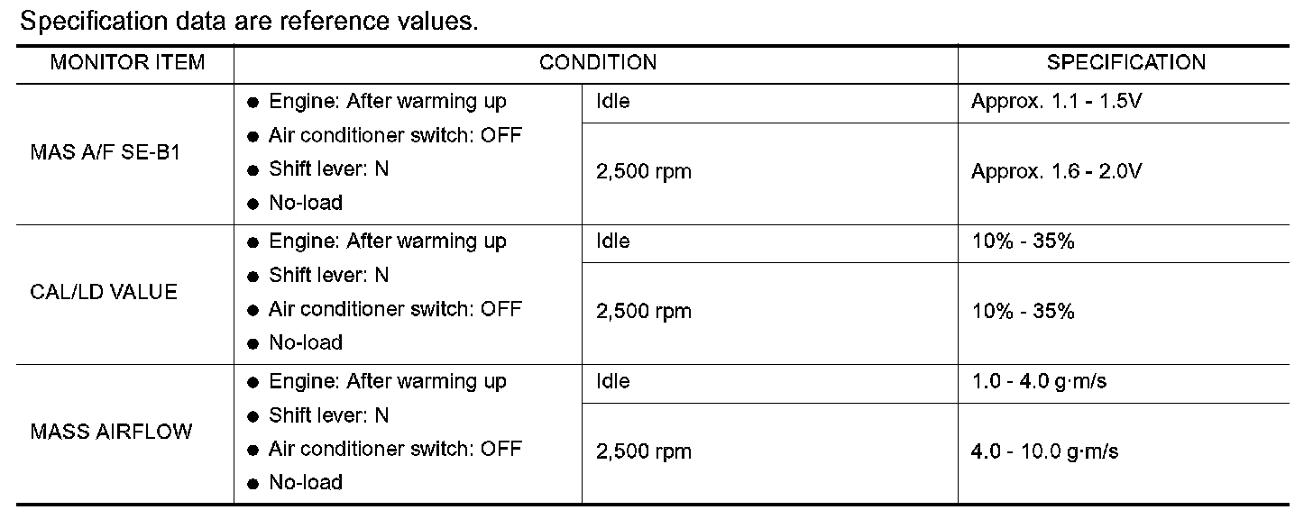 4. Check the voltage of "MAS A/F SE-B1" with "DATA MONITOR".