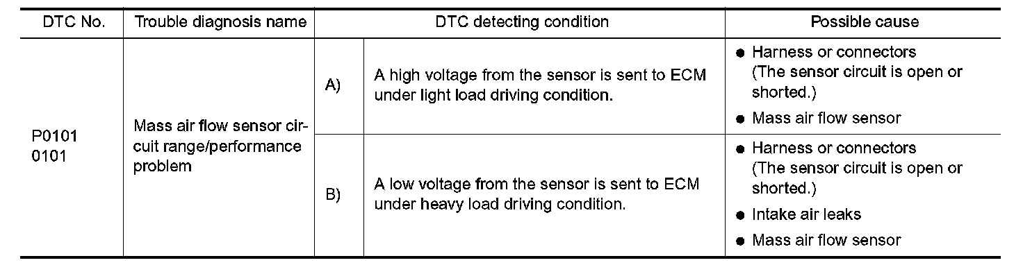 DTC P0101 MAF SENSORComponent Description