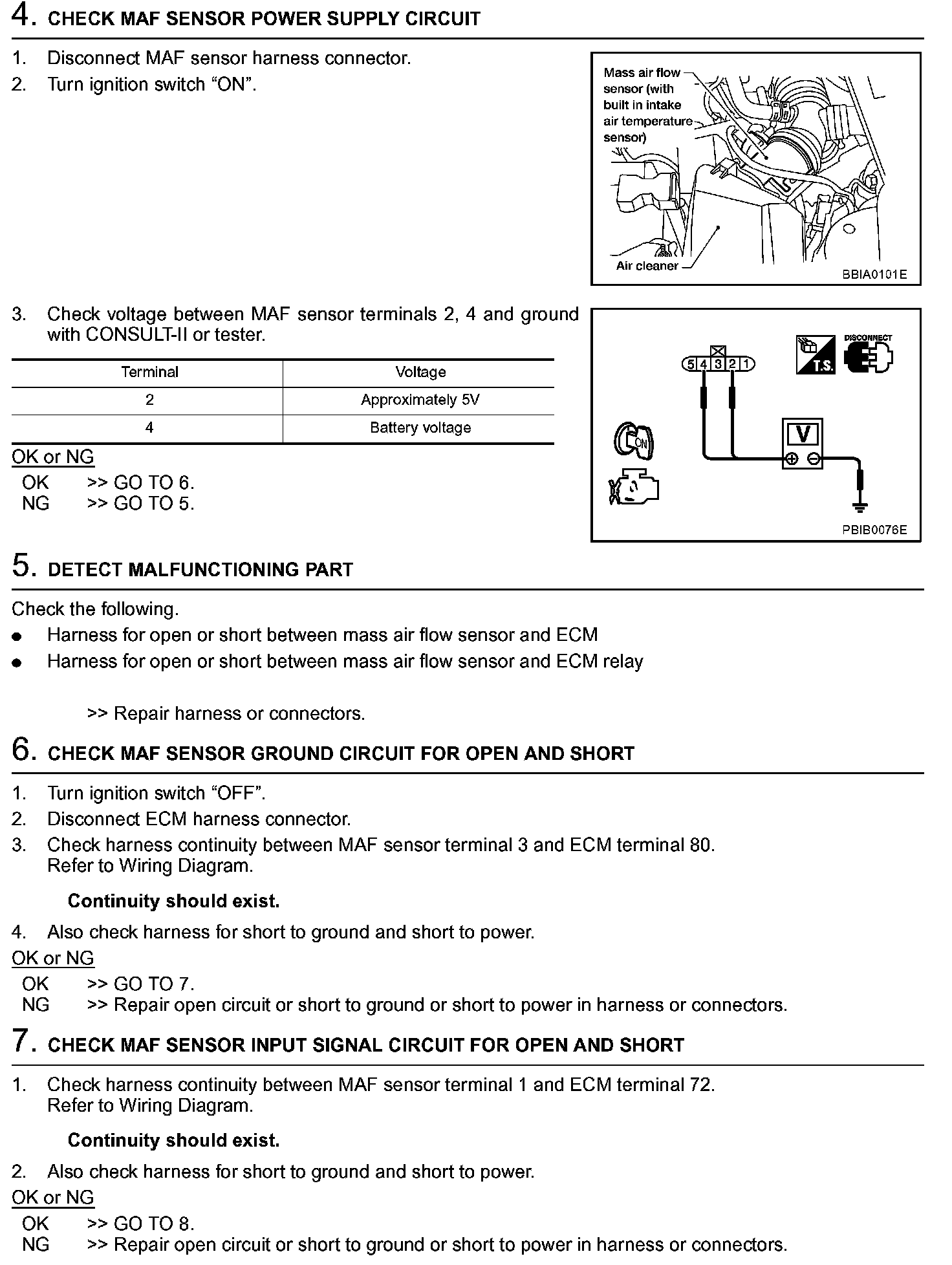6. If NG, clean or replace mass air flow sensor.
