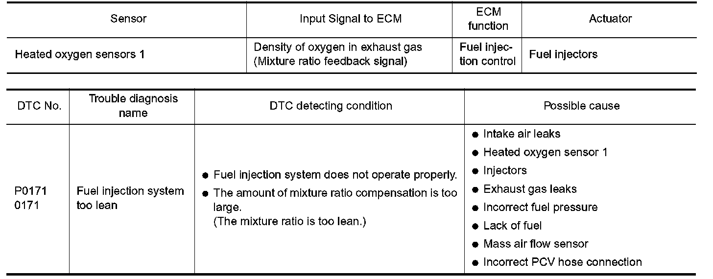 DTC P0171 FUEL INJECTION SYSTEM FUNCTIONOn Board Diagnosis Logic