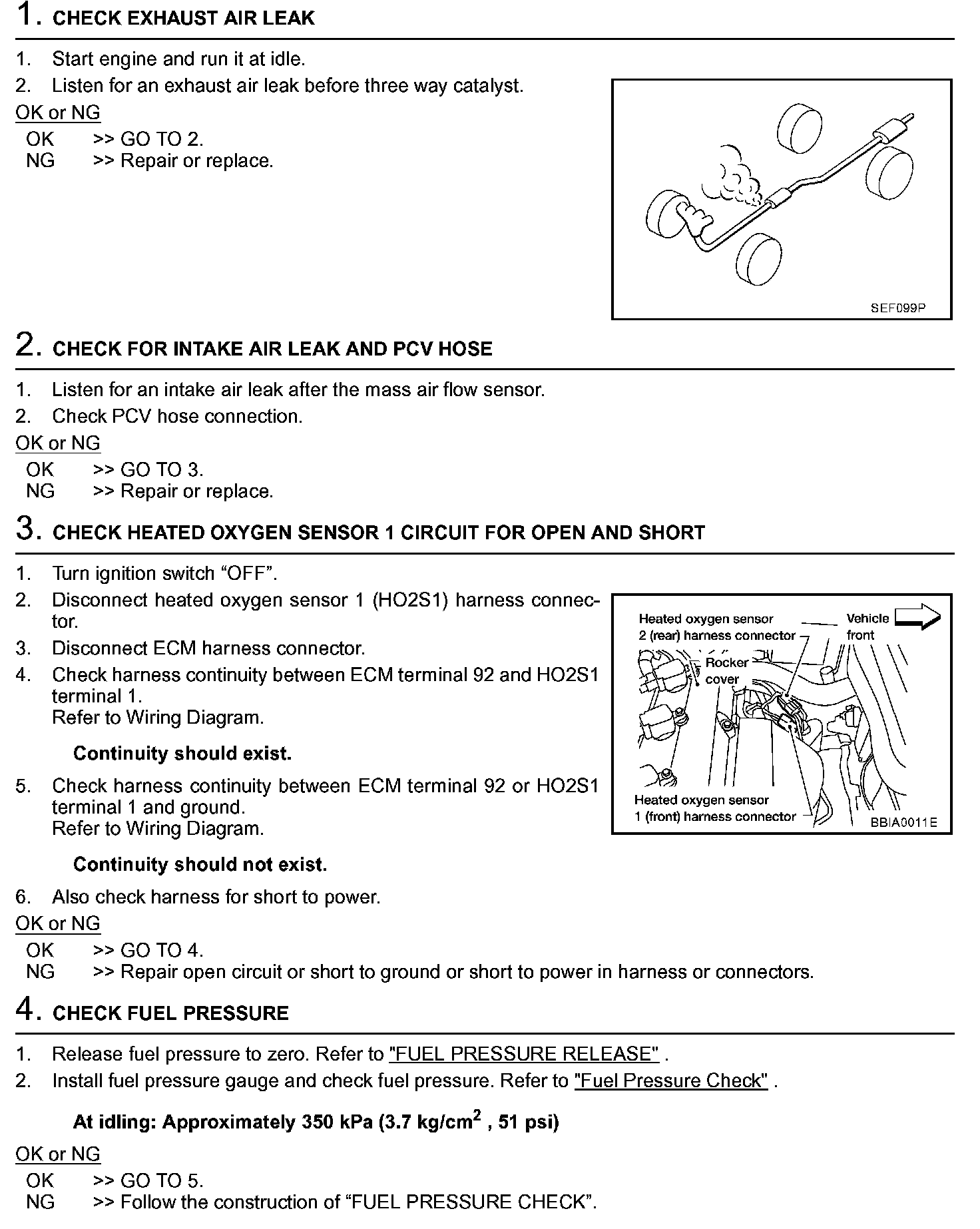 8. Crank engine while depressing accelerator pedal. If engine starts, go to "Diagnostic Procedure" below. If engine does not start, check exhaust and intake air leak visually.