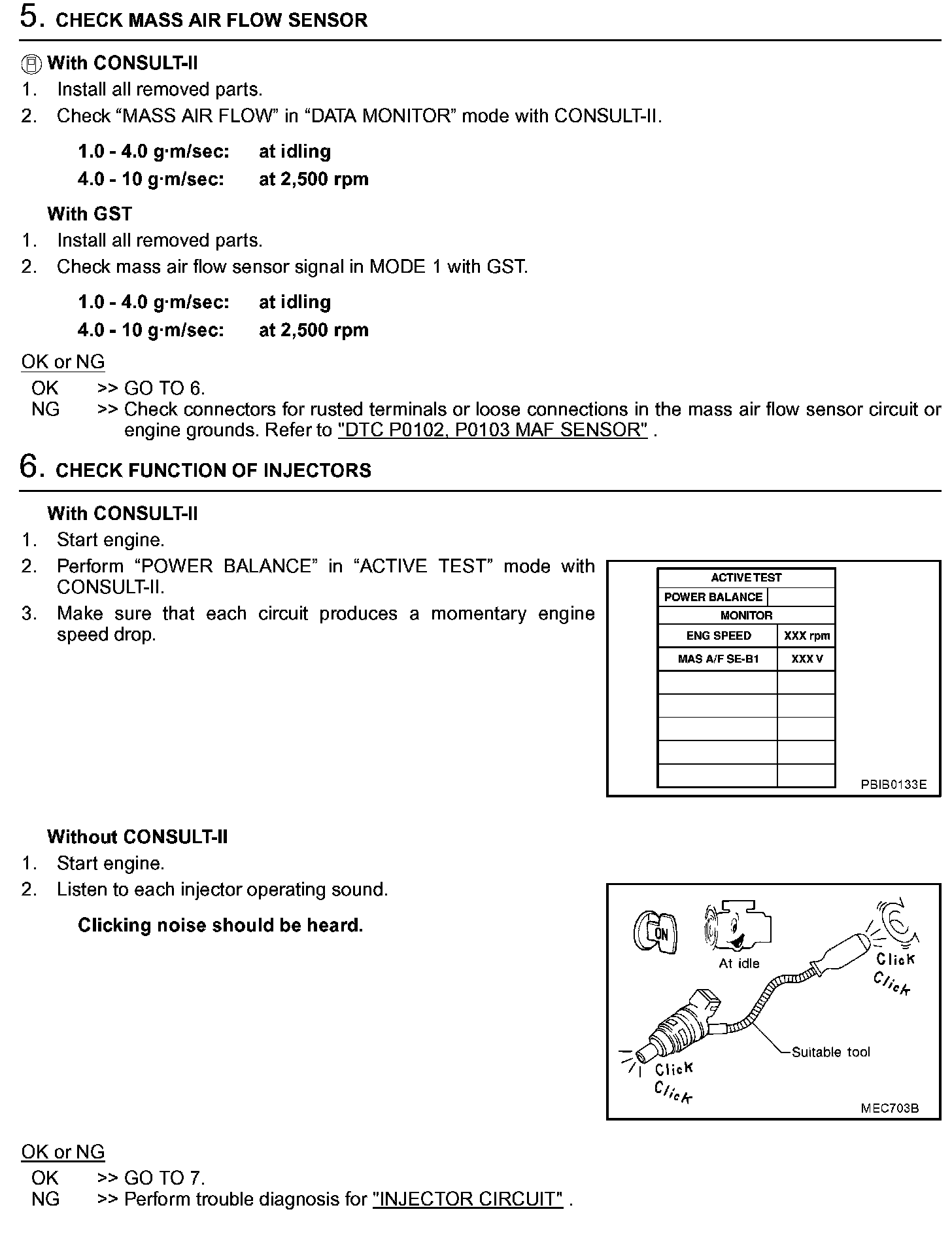 7. If it is difficult to start engine at step 6, the fuel injection system has a malfunction, too.