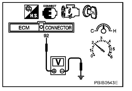 2. Set voltmeter probes between ECM terminal 92 [HO2S1(B1) signal] and engine ground.