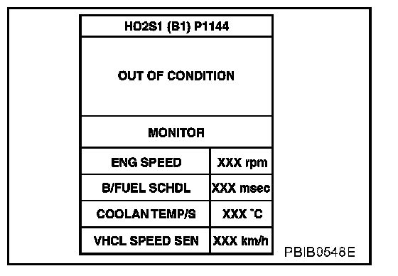 3. Turn ignition switch "ON" and select "HO2S1 (B1) P1144" of "HO2S1" in "DTC WORK SUPPORT" mode with CONSULT-II.