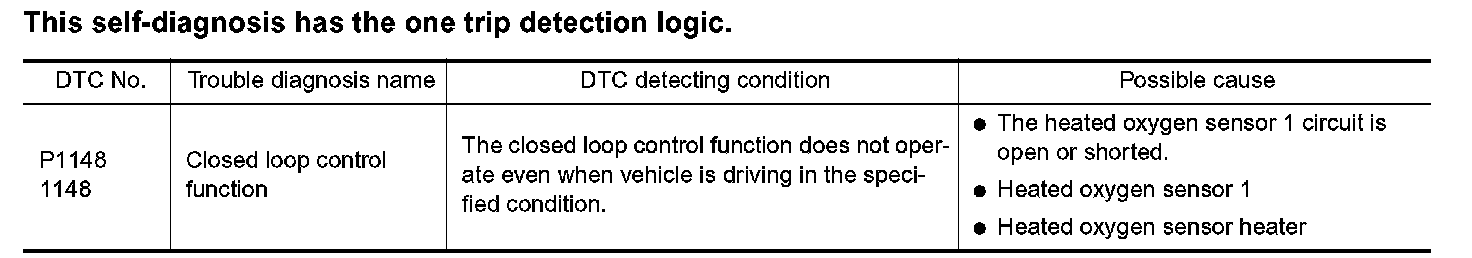 DTC P1148 CLOSED LOOP CONTROLOn Board Diagnosis Logic: