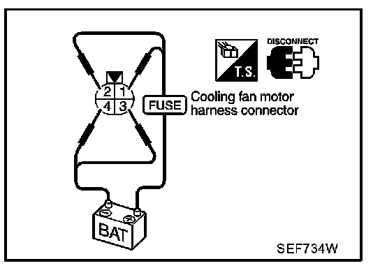 2. Supply cooling fan motor terminals with battery voltage and check operation.