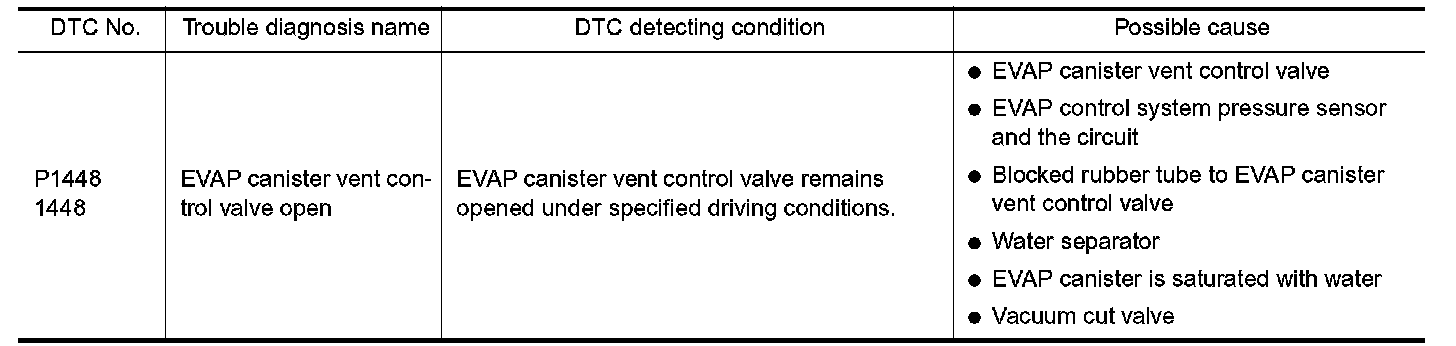- If DTC P1448 is displayed with P0442, perform trouble diagnosis for DTC P1448 first.