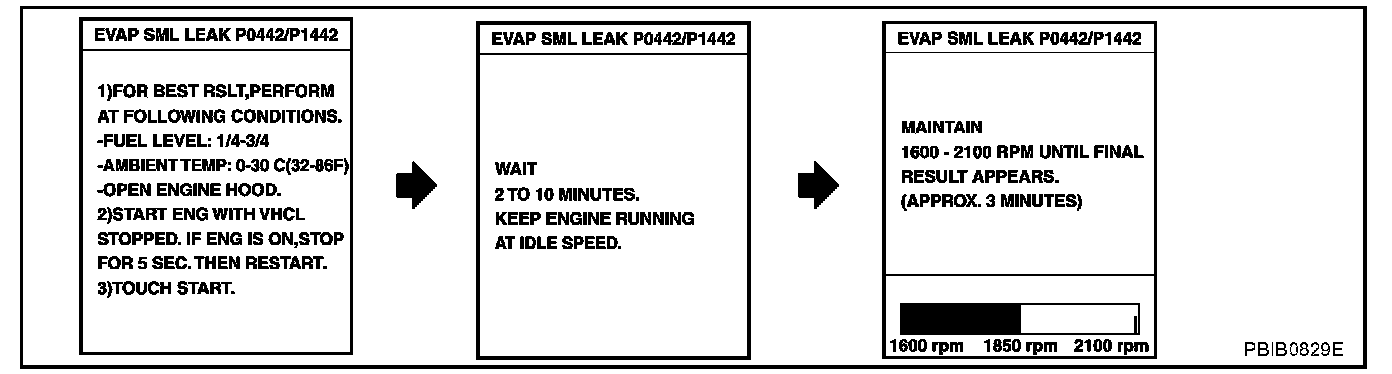 NOTE: If DTC P1448 is displayed with P0442, perform trouble diagnosis for DTC P1448 first.