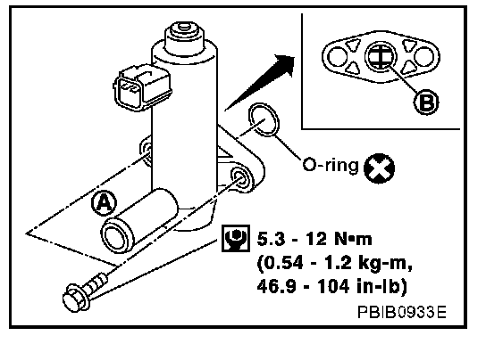 4. Clean the air passage (Portion A to B ) of EVAP canister vent control valve using an air blower.
