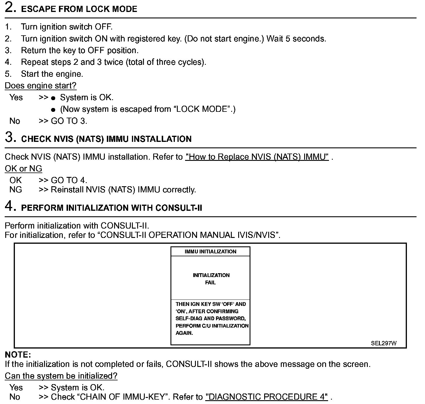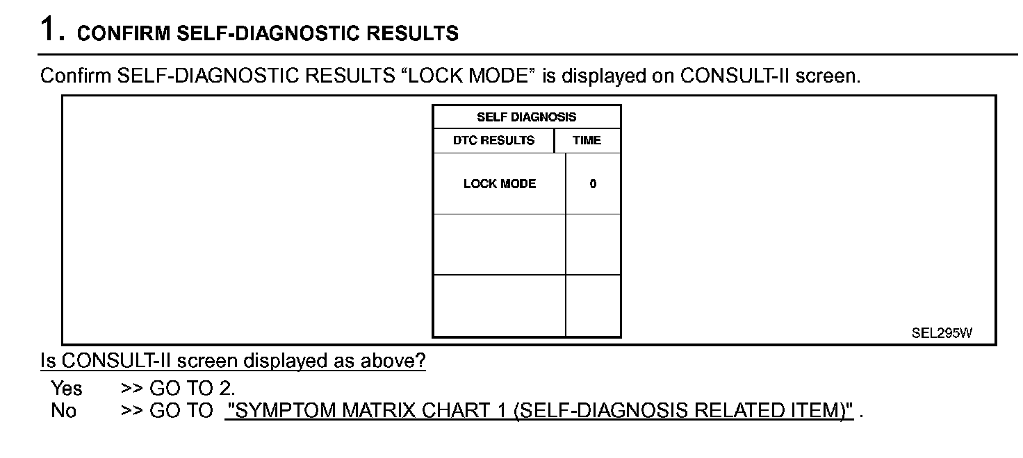 Self-diagnostic results: "LOCK MODE" displayed on CONSULT-II screen