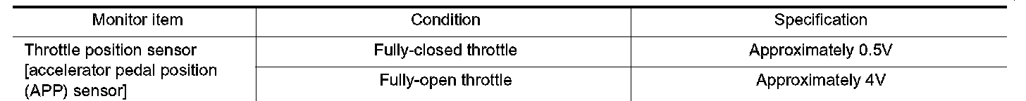 Fully-closed throttle: Approximately 0.5V