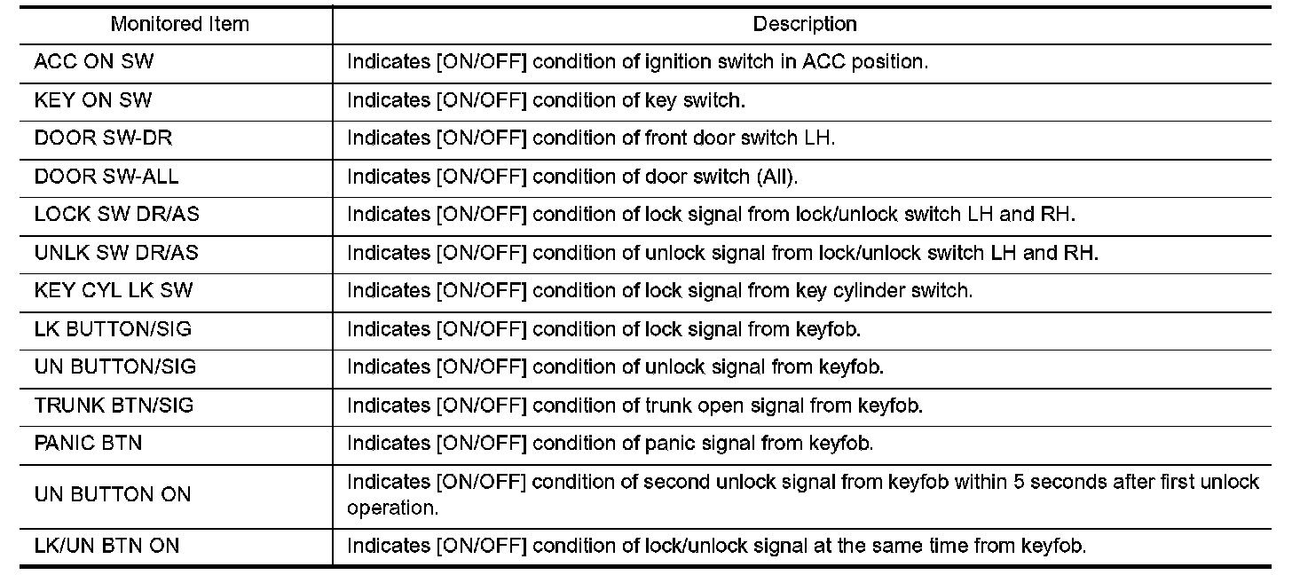Remote Keyless / Consult-II Application Items "MULTI REMOTE ENT" - Data Monitor: