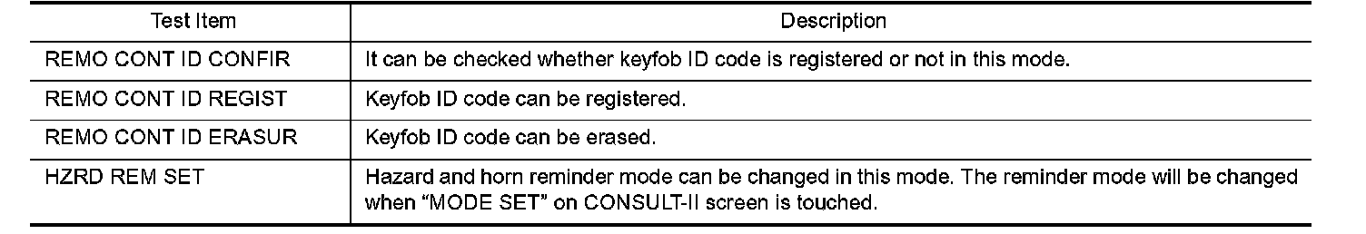 Remote Keyless / Consult-II Application Items "MULTI REMOTE ENT" - Work Support: