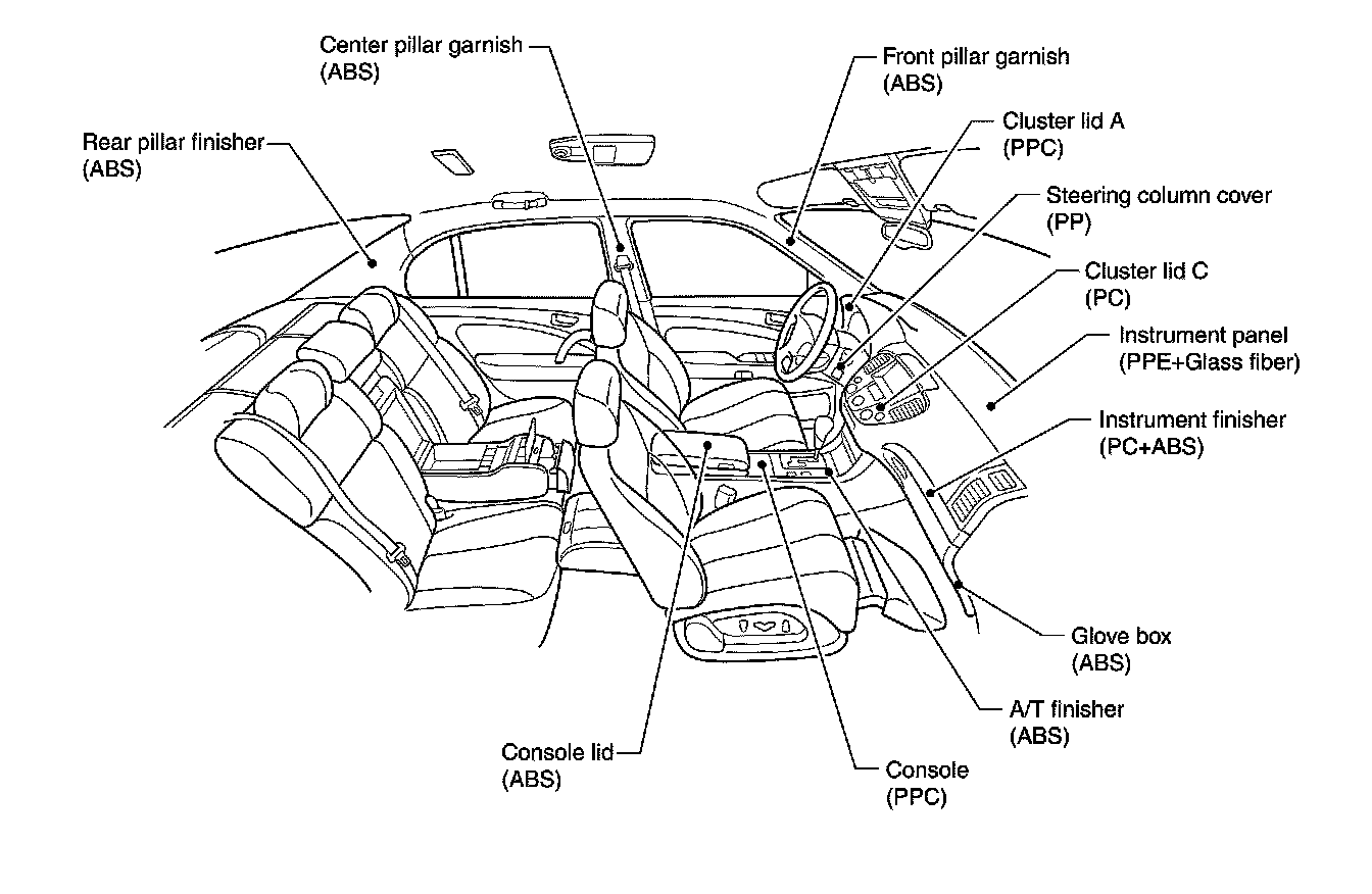 1. When repairing and painting a portion of the body adjacent to plastic parts, consider their characteristics (influence of heat and solvent) and remove them if necessary or take suitable measures to protect them.