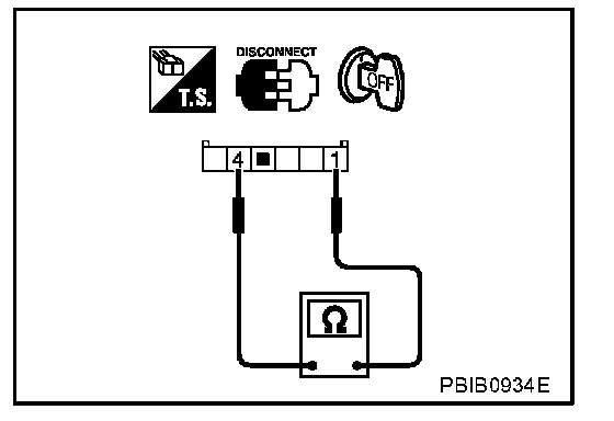 2. Check continuity between ASCD steering switch terminals 1 and 4 with pushing each switch.