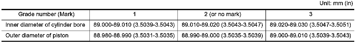 ^ The piston pin (piston pin bore) grade is provided only for the parts installed at the plant. For service parts, no grades can be selected. Only 0 grade is available.