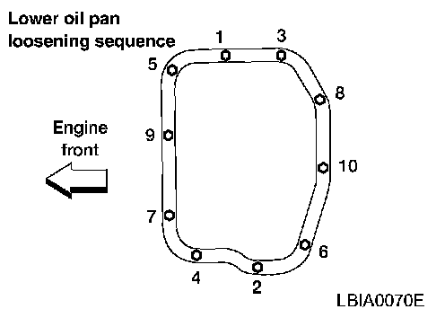 7. Remove the lower oil pan bolts. Loosen the bolts in the order shown.