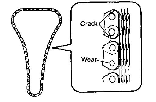 Check the timing chain for cracks or serious wear. If a defect is detected, replace it.