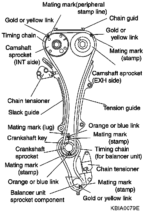 - There may be two color variations of the link marks (link colors) on the timing chain.