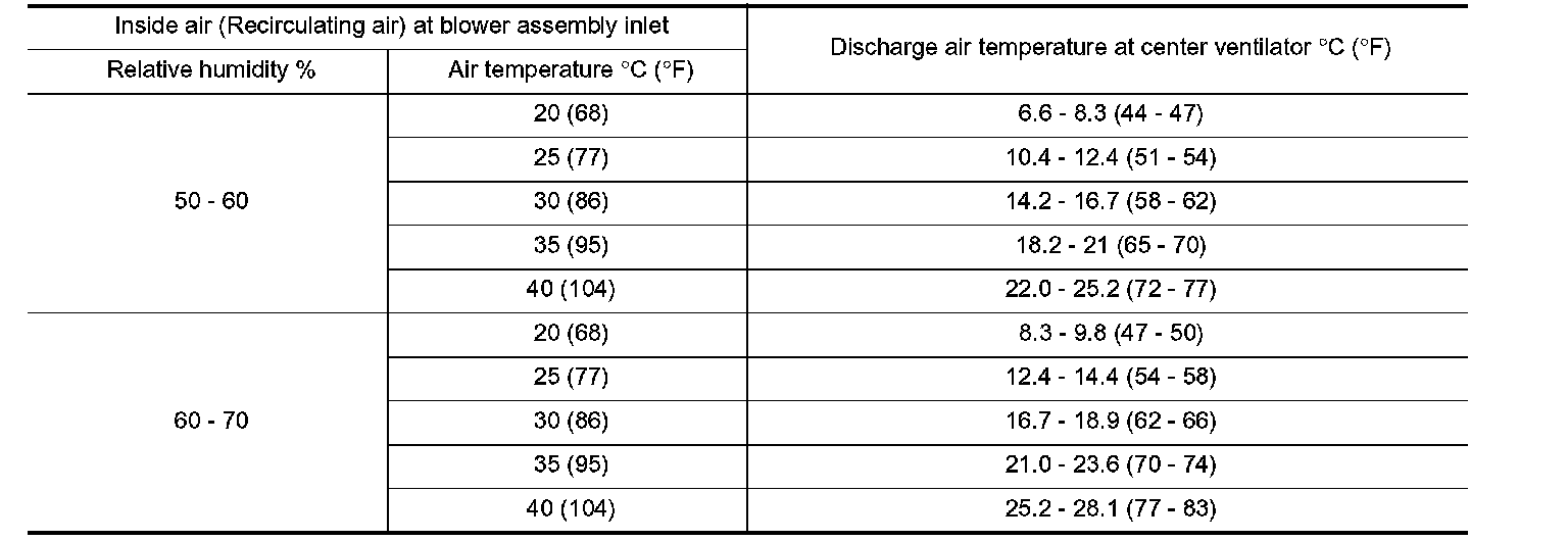 Recirculating-to-Discharge Air Temperature Table:
