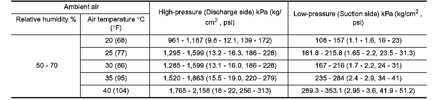 Ambient Air Temperature-to-Operating Pressure table: