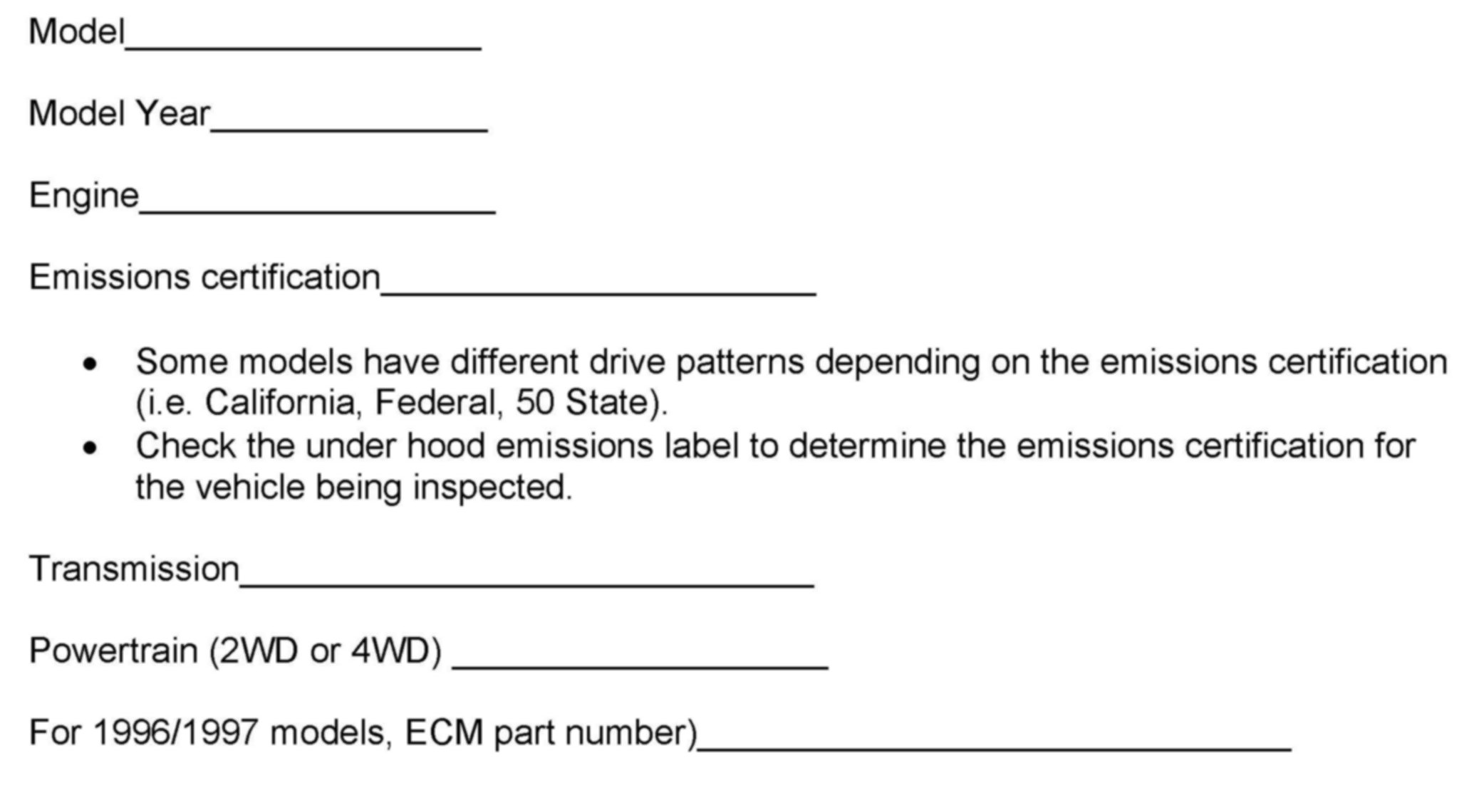 > This bulletin contains a specific Driving Pattern for every 1996 and 1997 Nissan vehicle.