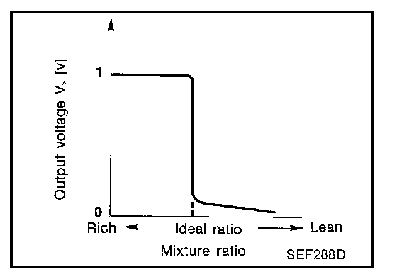 This sensor is made of ceramic zirconia. The zirconia generates voltage from approximately 1V in richer conditions to 0V in leaner conditions.
