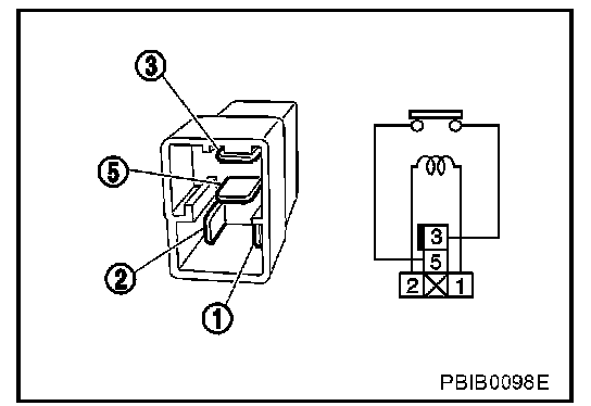 1. Apply 12V direct current between relay terminals 1 and 2.