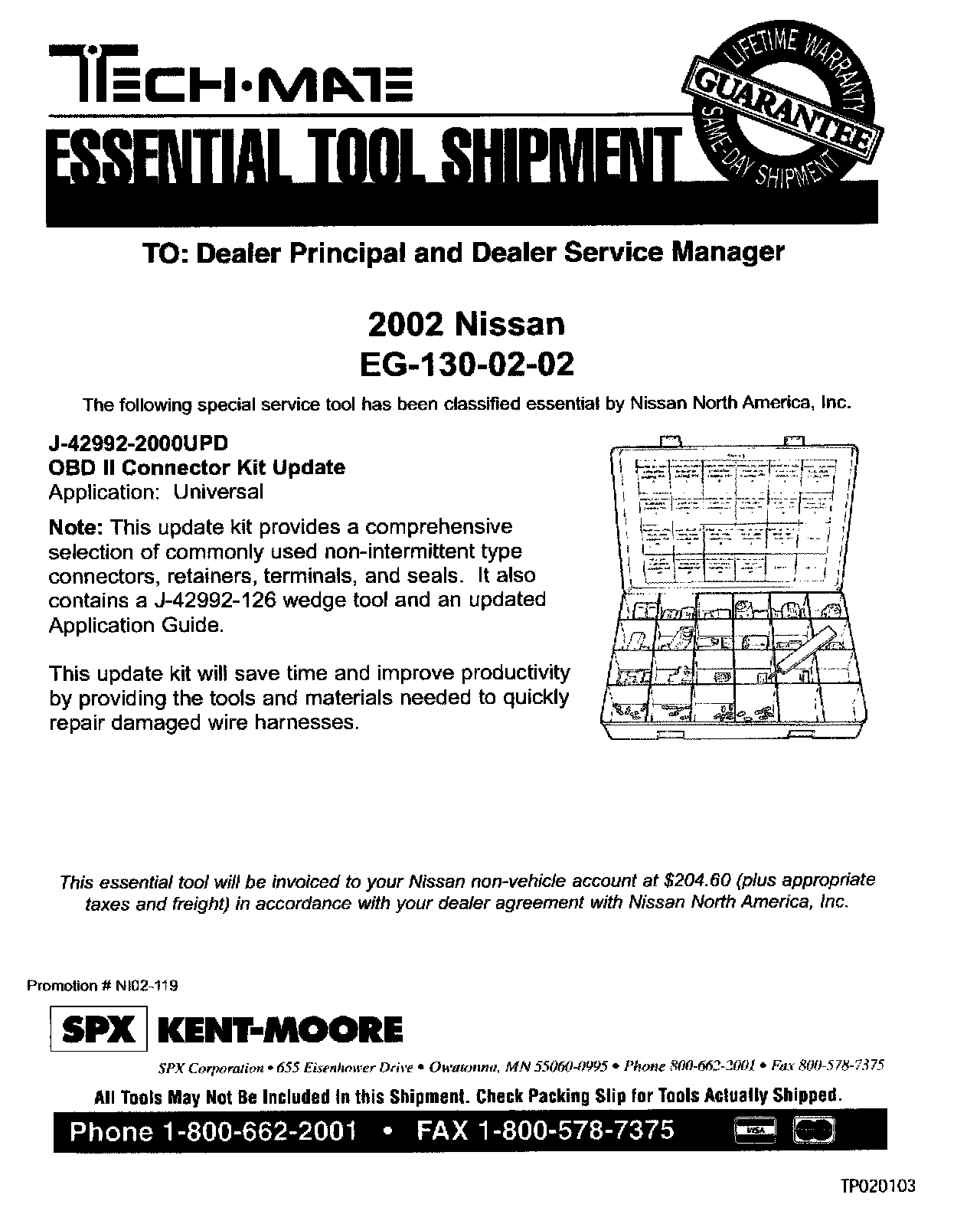 ^ This special tool is "Essential" and has been automatically sent to all Nissan dealers. The non-vehicle account will be billed $204.60.