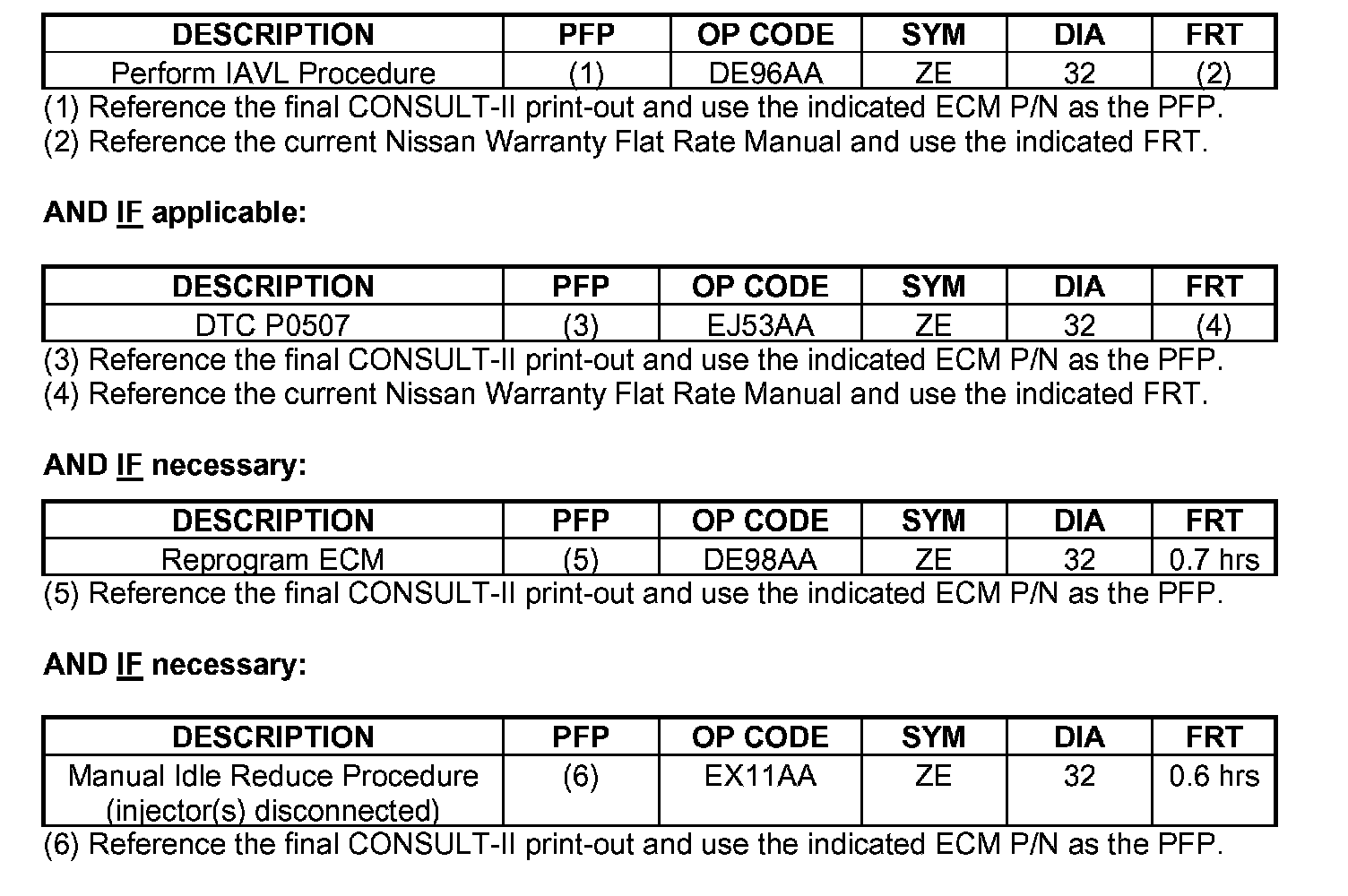 ^ For 2004 and 2005 model years, ECM reprogramming will not clear the vehicle "in-use" learned IAVL. Reprogramming won't reduce the idle speed.