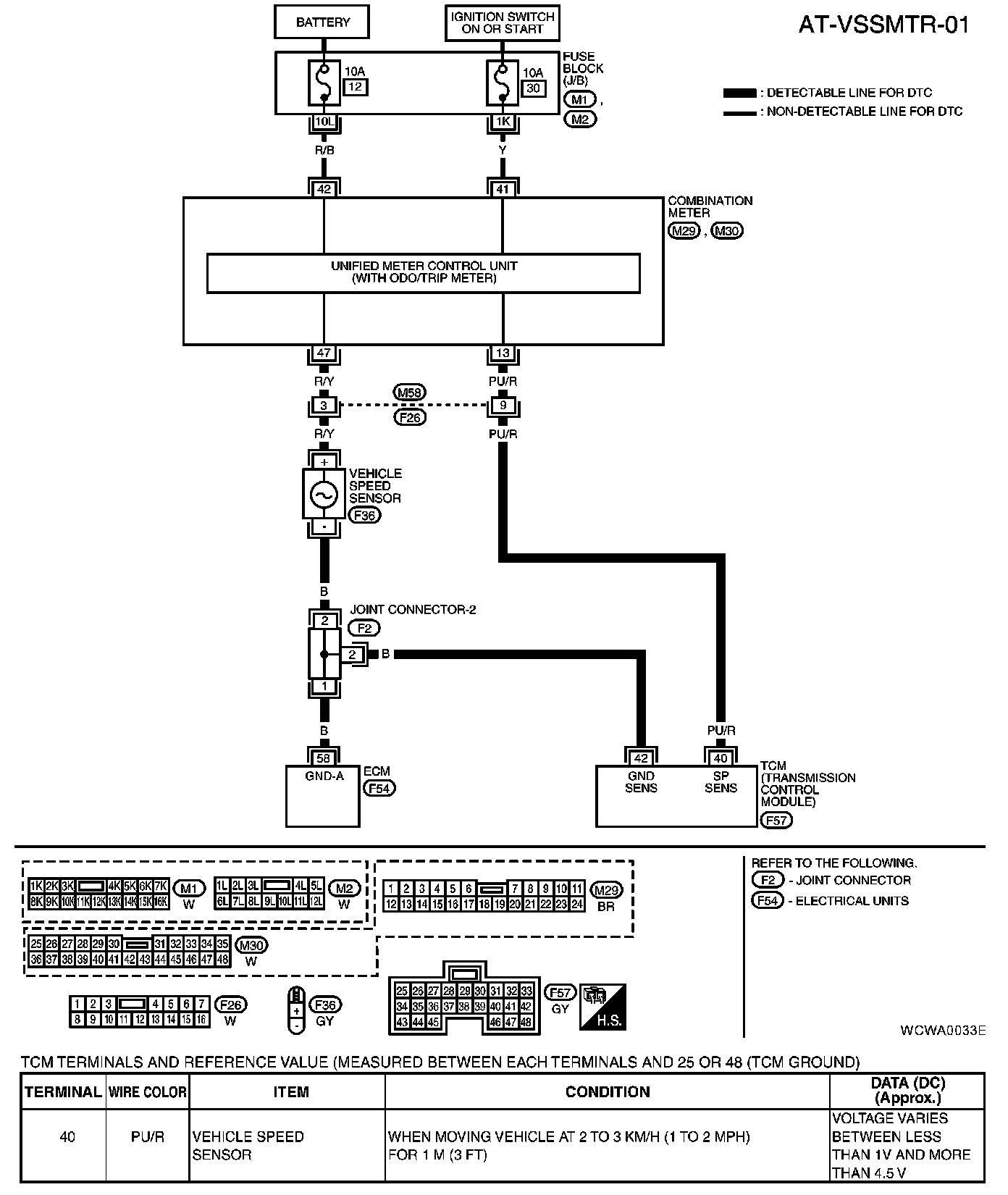 - Harness for short or open between TCM and vehicle speed sensor (Main harness)