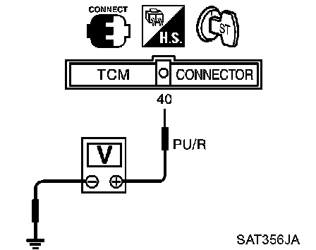 2. Check voltage between TCM terminal 40 and ground while driving at 2 to 3 km/h (1 to 2 MPH) for 1 m (3 ft.) or more.