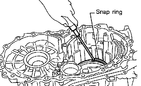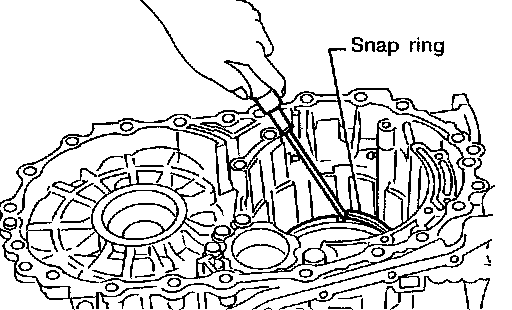 5. Measure clearance between driven plate and transmission case. If not within allowable limit, select proper retaining plate. (front side)