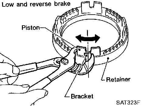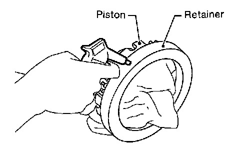 2. In order to remove piston, apply compressed air to oil hole of retainer while holding piston.
