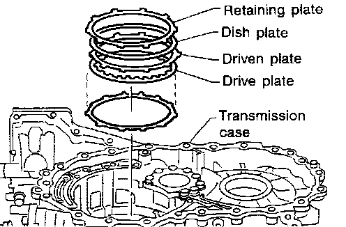3. Install driven plates, drive plates, retaining plate and dish plate on transmission case.