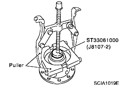 3. Using a drift and puller, remove differential side bearing (clutch housing side).