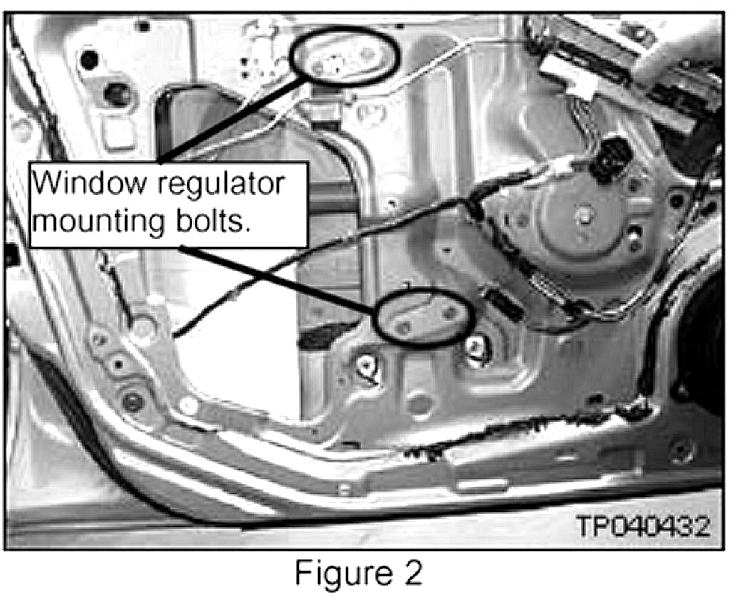 2. Loosen all four window regulator mounting bolts.