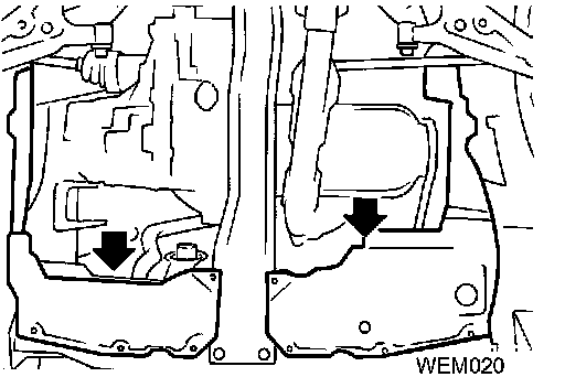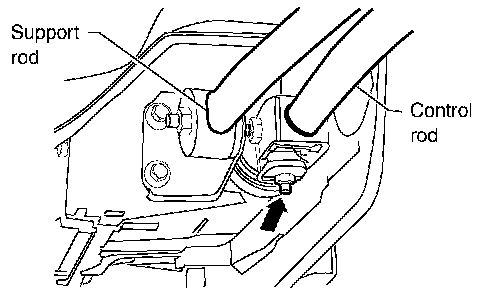 ^ Disconnect control rod and support rod from transaxle (M/T models).