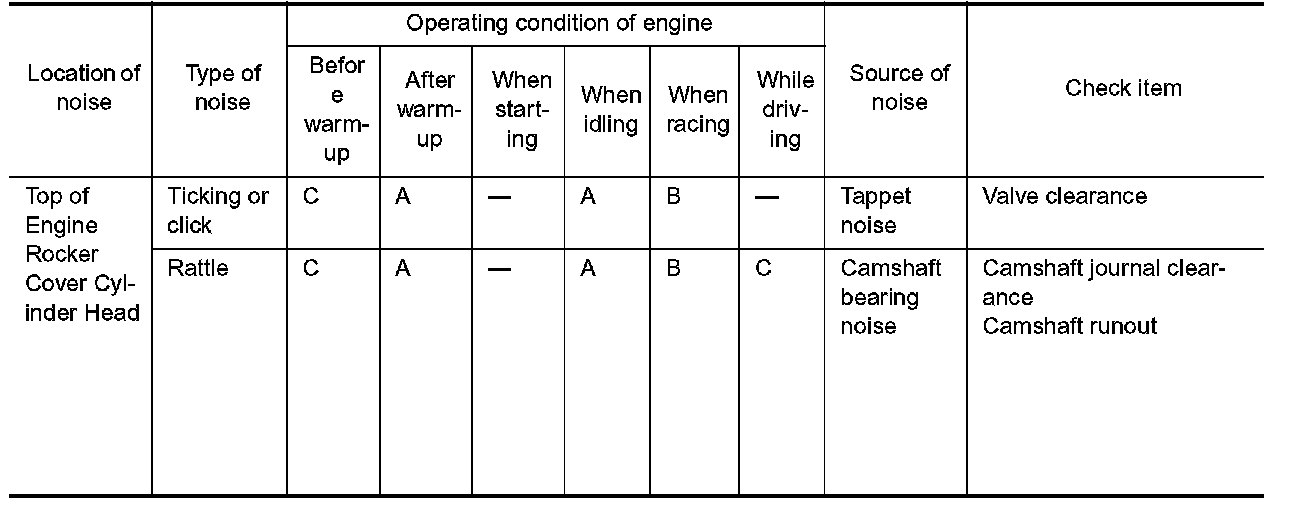 Noise, Vibration and Harshness (NVH) TroubleshootingNVH TROUBLESHOOTING - ENGINE NOISE