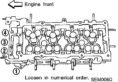 9. Remove rocker cover bolts in numerical order as shown in the figure.