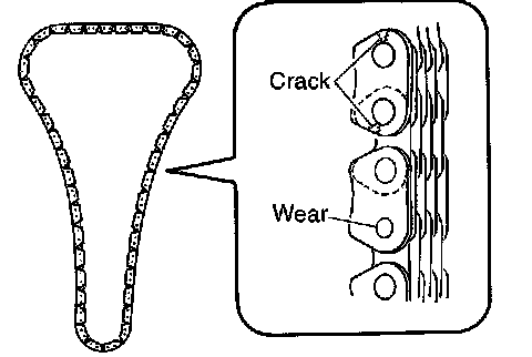 Check for cracks and excessive wear at roller links. Replace if necessary.